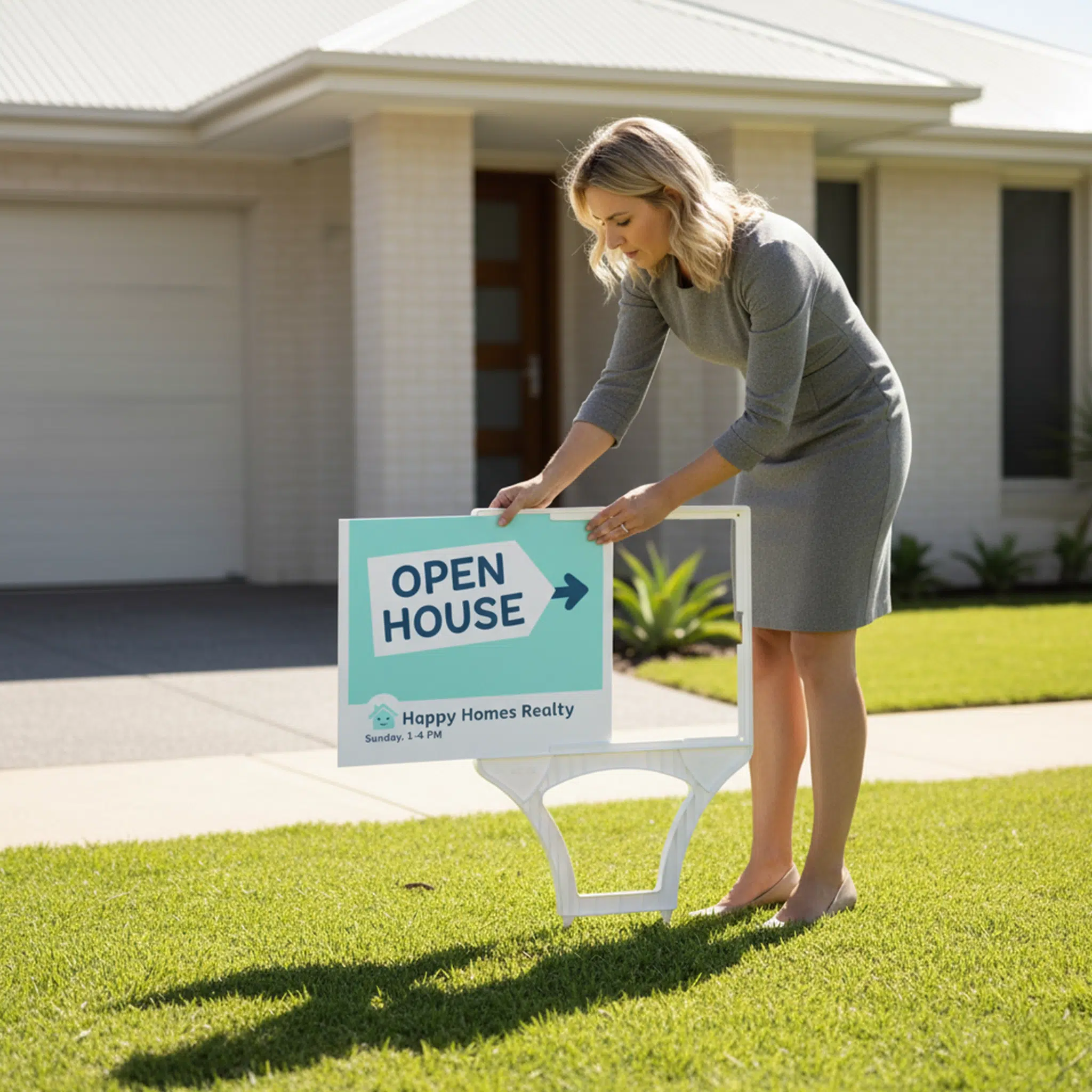The NEW Vibe Lawn Sign Frame is a bold and practical display solution designed for real estate professionals who value impact and convenience. Constructed from durable ABS plasticwith stainless steel ground spikes, the Vibe combines lightweight portability with strong, long-lasting performance.